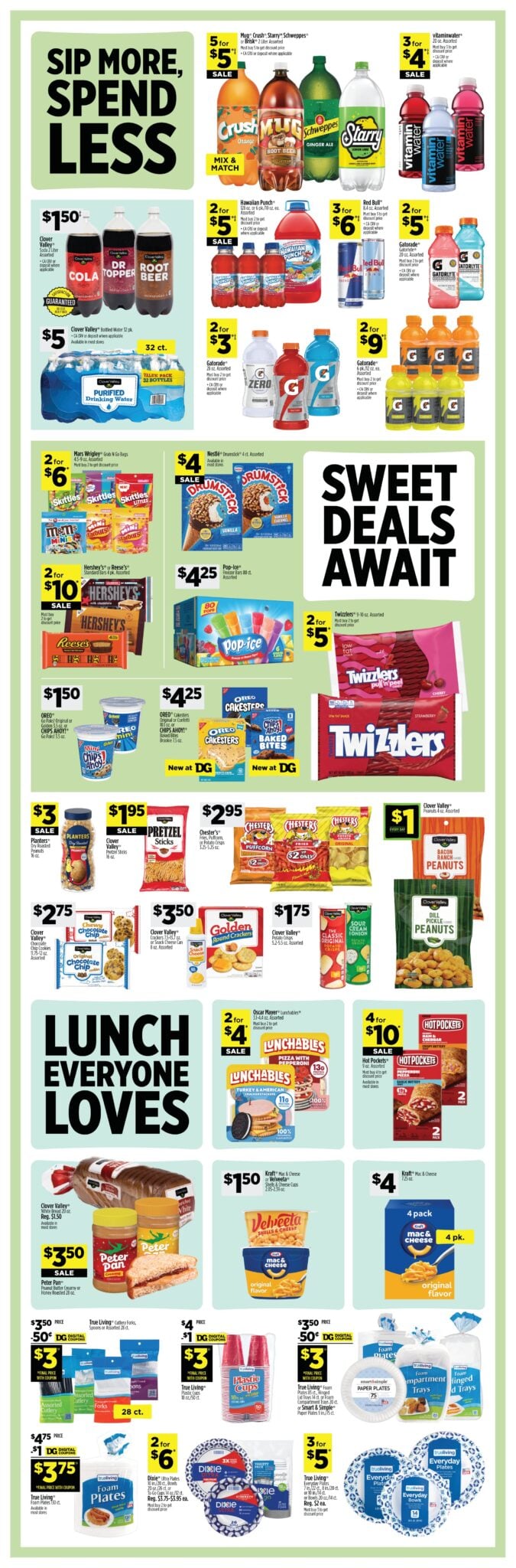 Browse the Dollar General Weekly Ad preview for next week, valid April 19 – April 25, 2026. Save with this week Dollar General Flyer Sale specials, digital coupons and Buy One get One 50% OFF Deals. View Dollar General Coupons for this week. Save time and money with the retailer brands like the Clover Valley, Sweet Smiles or Ever Pet products.